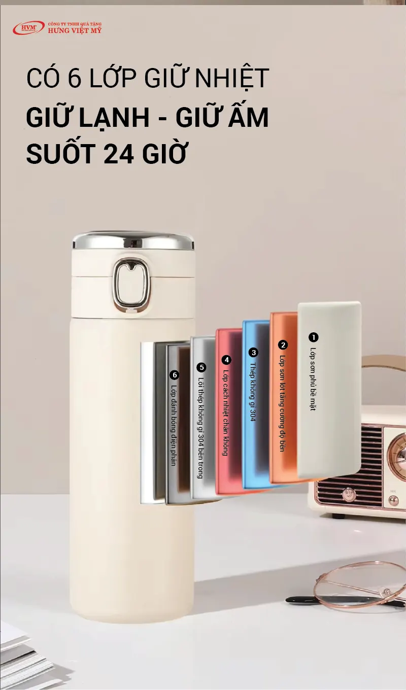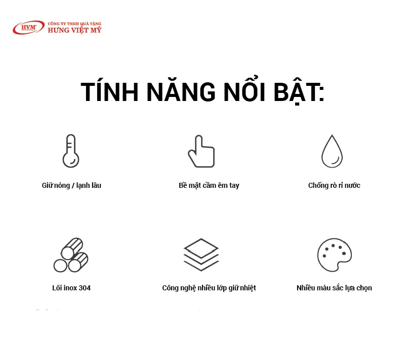 Những chiếc bình giữ nhiệt in logo không chỉ là vật dụng thiết thực mà còn trở thành công cụ truyền thông mạnh mẽ. Khi tặng bình giữ nhiệt cho khách hàng, doanh nghiệp gửi gắm thông điệp của sự quan tâm và chân thành, đồng thời khắc sâu hình ảnh thương hiệu trong tâm trí người nhận. Nếu bạn đang tìm kiếm những món quà đảm bảo về chất lượng và có nguồn gốc rõ ràng, hãy liên hệ với Hưng Việt Mỹ để được tư vấn và thiết kế theo đúng yêu cầu của mình.