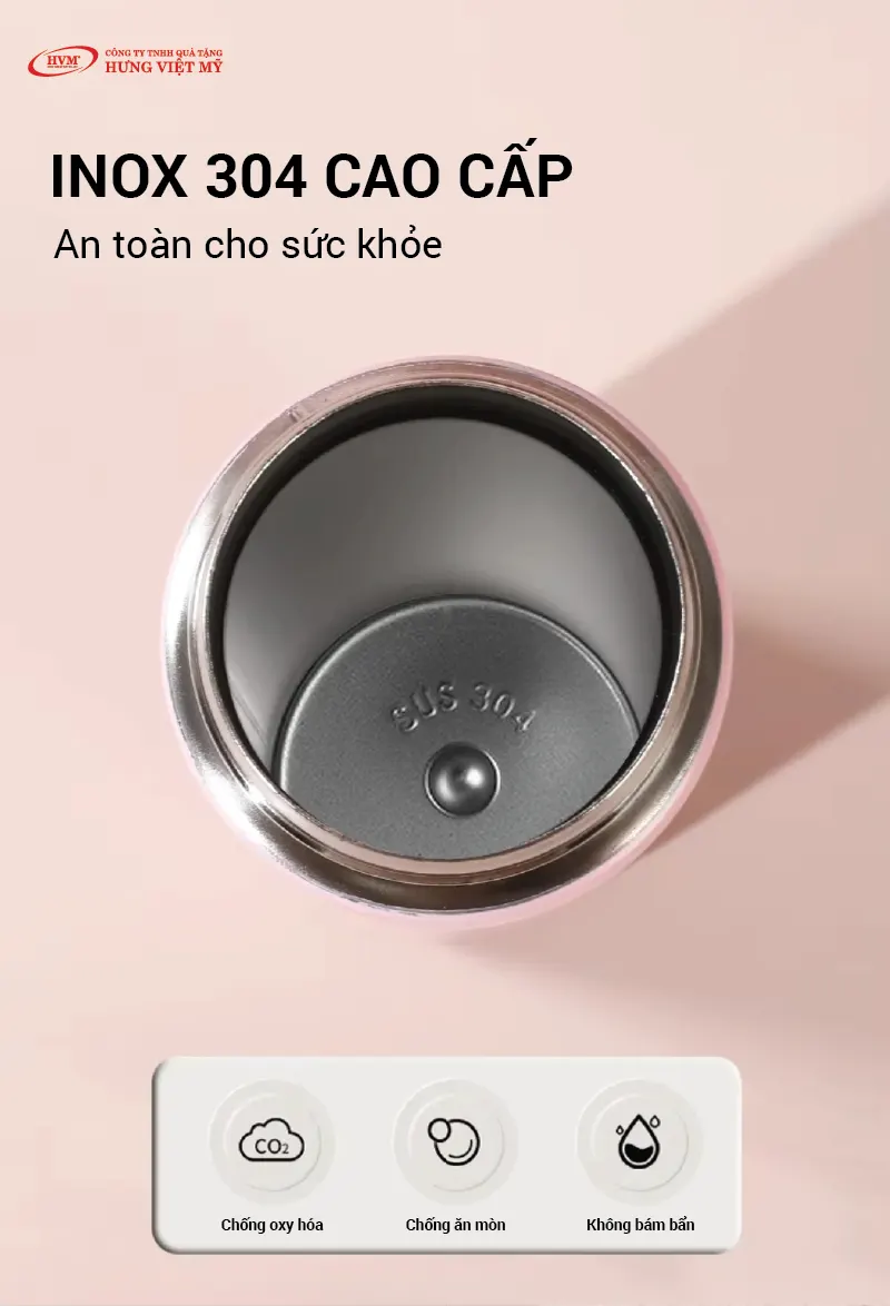 Được chế tạo từ inox 304 chất lượng cao, bình giữ nhiệt không chỉ bền bỉ và chống gỉ sét mà còn đảm bảo an toàn cho sức khỏe người dùng và dễ dàng vệ sinh. Inox 304 đảm bảo rằng sản phẩm có tuổi thọ cao, quá trình làm sạch dễ dàng giúp bạn yên tâm sử dụng trong thời gian dài.