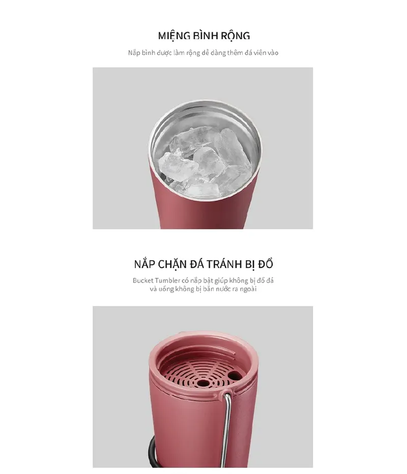 - Miệng bình rộng, dễ cho đá viên và làm sạch bên trong
