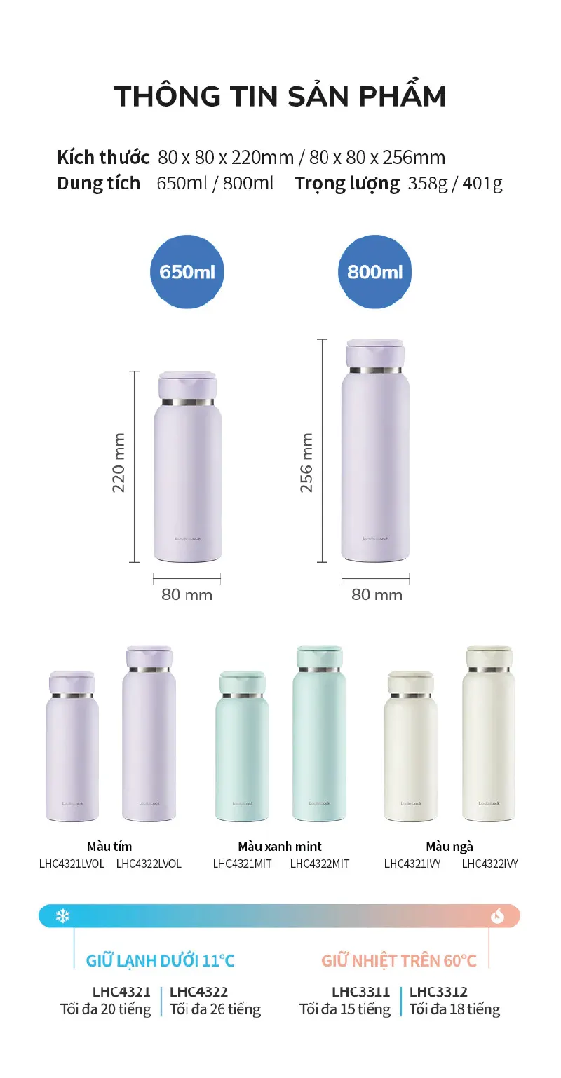 - Dung tích: 650ml,800ml