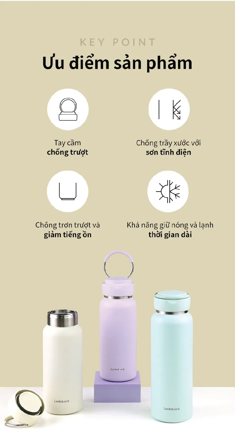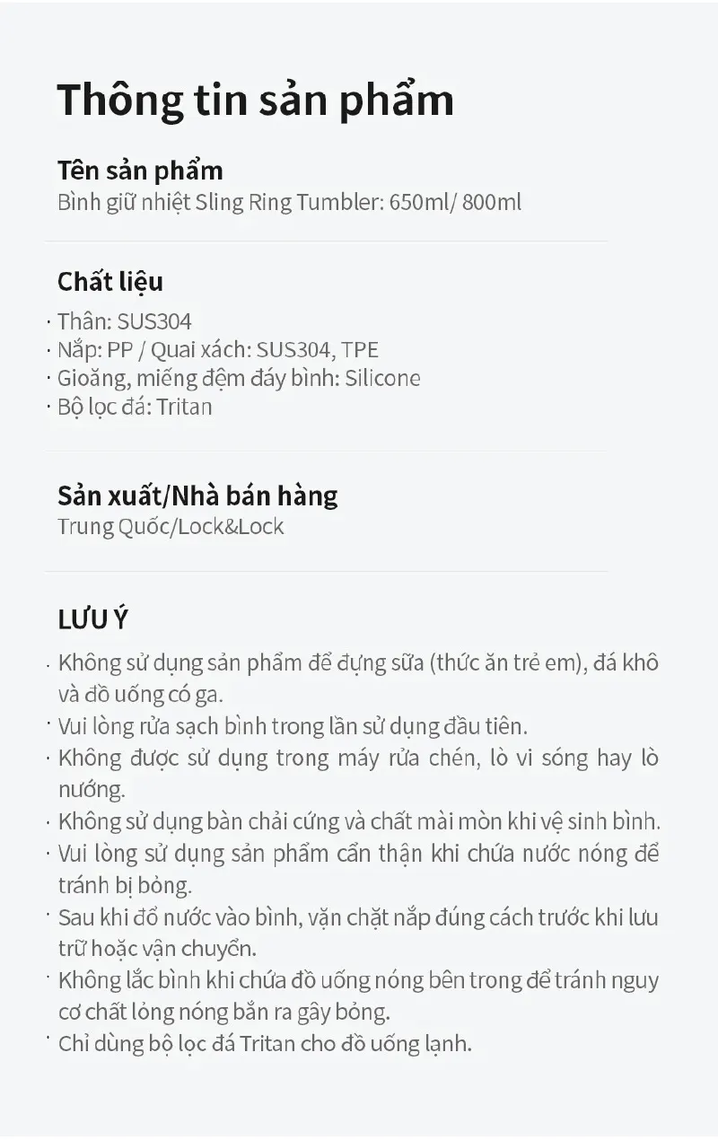 Bình Giữ Nhiệt LocknLock Sling Ring Tumbler – 650ml / 800ml – Giữ Nhiệt Lâu, Thiết Kế Quai Xách