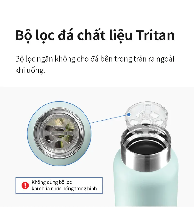 - Bộ lọc đá Tritan tiện lợi, uống không lo đá tràn