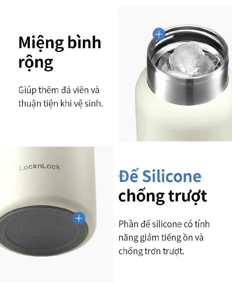 - Miệng bình rộng, dễ cho đá và vệ sinh nhanh chóng