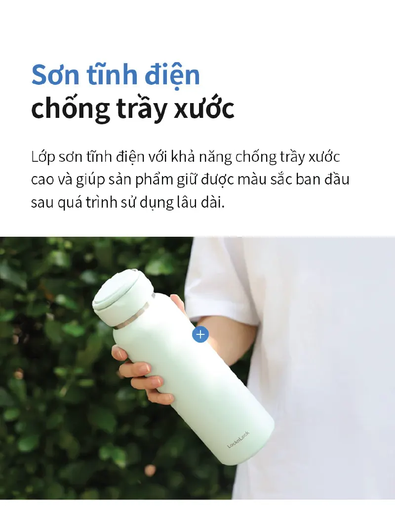 - Cấu trúc 2 lớp chân không giúp giữ nhiệt tốt, không đọng sương bên ngoài